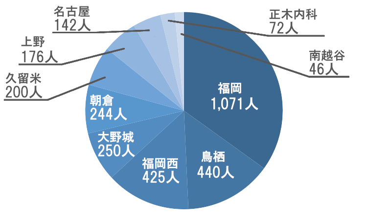 ※今年度の統計では2025年4月からの九州エリア分院化に伴う患者様の異動がありましたため、一部集計を各院ではなく九州エリアとしております