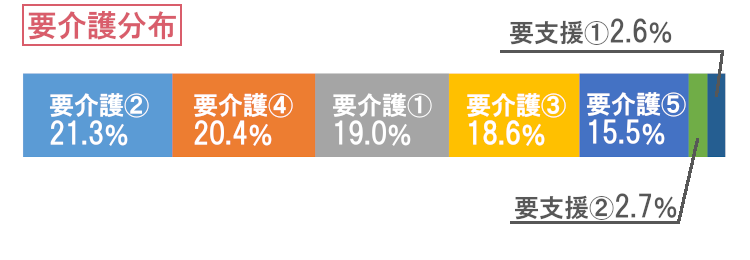 要介護3以上の割合は前年と同じ54.5%でした。ただし、前年と異なる点は、要介護3が減って要介護4が増えたことです。