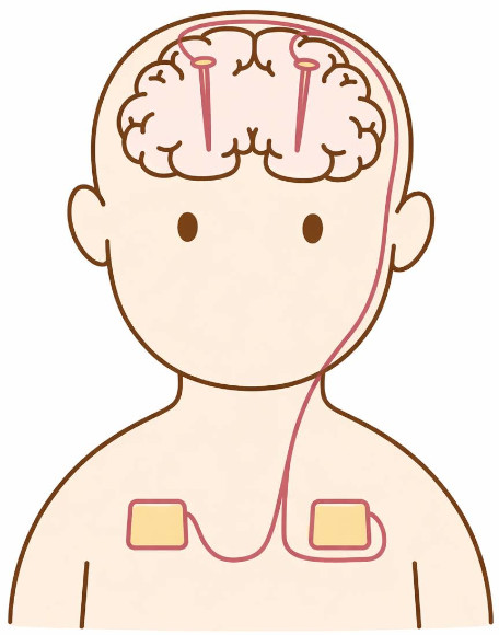 手術で脳に電極を入れて電気刺激を与えることで、症状の変動を少なくしたり、お薬の量や種類を減らして副作用を抑えたりすることができます