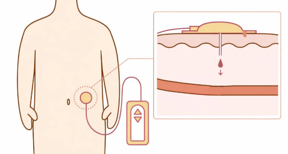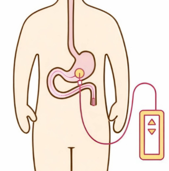 お腹にチューブを入れ、レボドパを持続的に投与して、症状の変動を少なくし、何度もお薬を飲むストレスを軽減する方法です